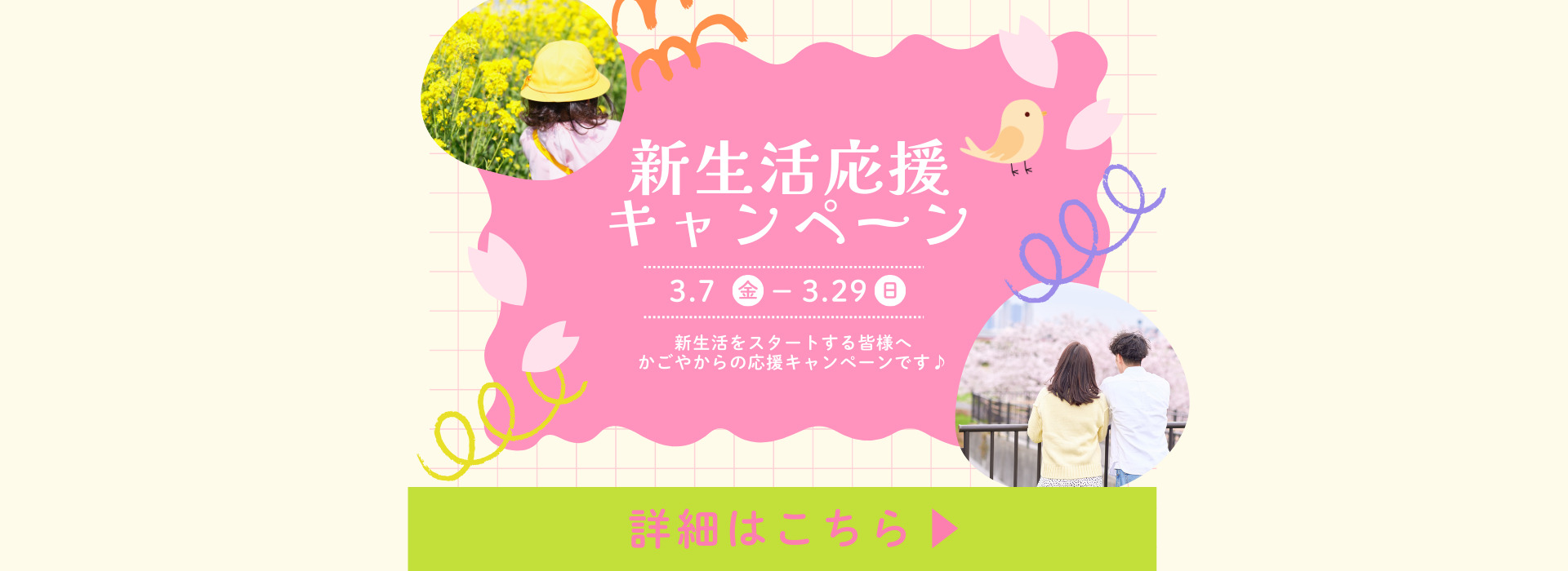「新生活を応援!家具全品30%OFFキャンペーン開催中」 ~春からの新生活、KAGOYAで賢くスタートしませんか?~ KAGOYAでは、この春に新しい住まいへのお引越しや、お部屋の模様替えを検討されている皆様を全力で応援します。 期間中に当社にてご契約いただいたお客様限定のスペシャルキャンペーンです。 対象期間: 2026年3月7日(金)〜 3月28日(日) 対象者: 上記期間中にホームページ掲載中の不動産をご契約いただいたお客様 特典: 家具全品 30%OFF ...
